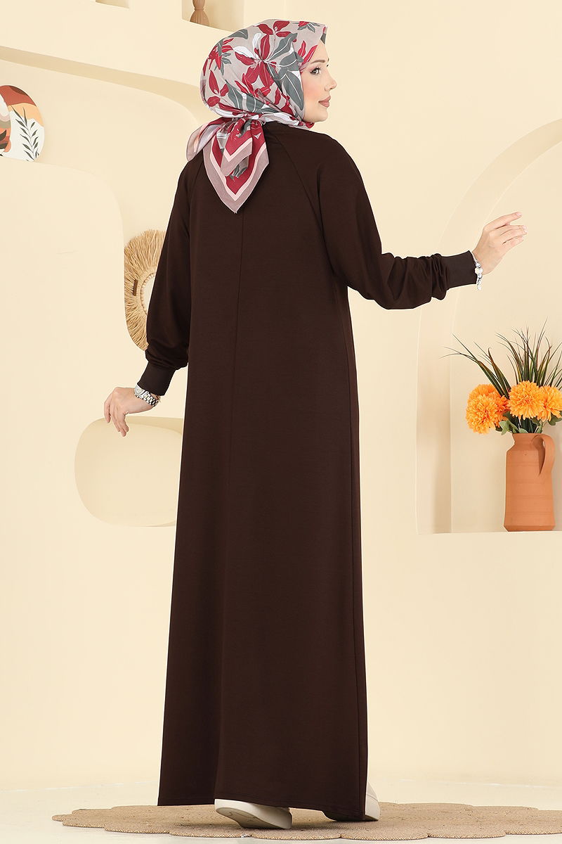 Kuşgözü Detaylı Kristal Elbise 3455UZ662 Kahve