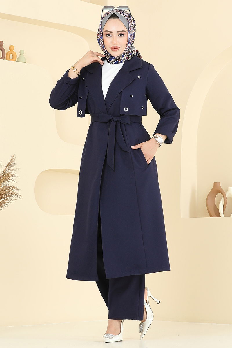 Ürün Özelliği : Yeni sezon tesettür moda ürünüdür. Ürün Kruvaze yakadır. Astarsızdır. Kemer ürüne dahildir, isteğe bağlı kullanılmayabilir. Cep mevcuttur. Pantolon beli lastiklidir. Konsept fotoğraf çekimlerinden dolayı üründe ton farklılığı olabilir.