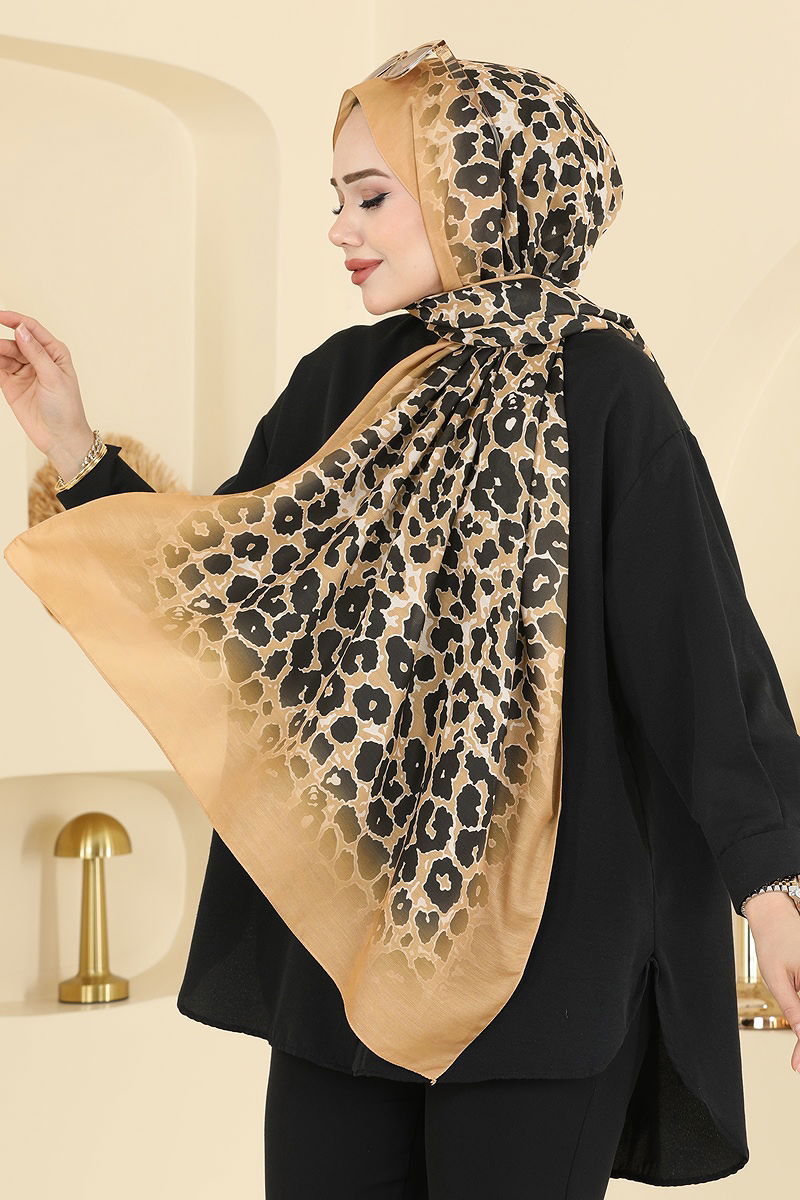 Leopar Desen Soft Şal Serisi 154IPK758 Hardal