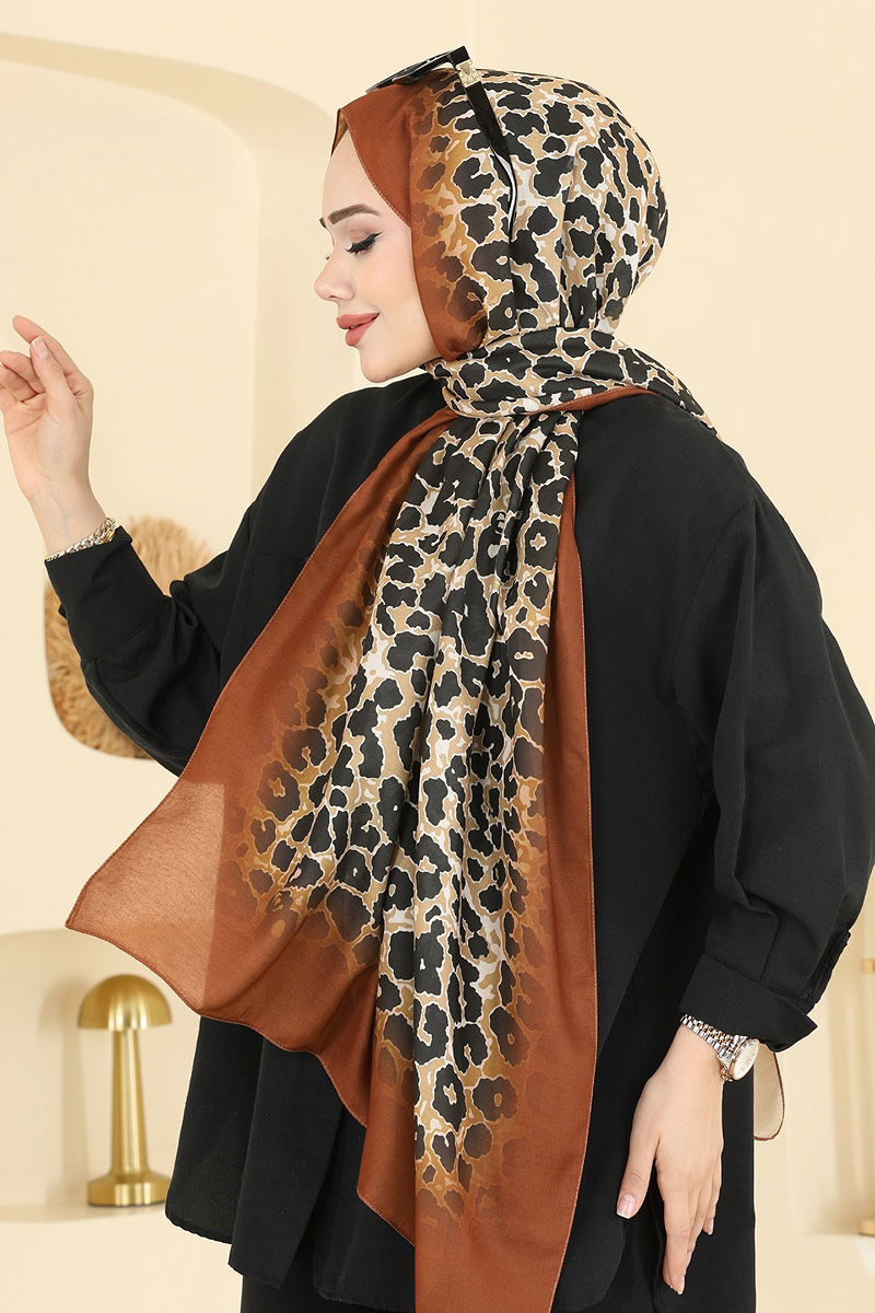 Leopar Desen Soft Şal Serisi 154IPK758 Kahve