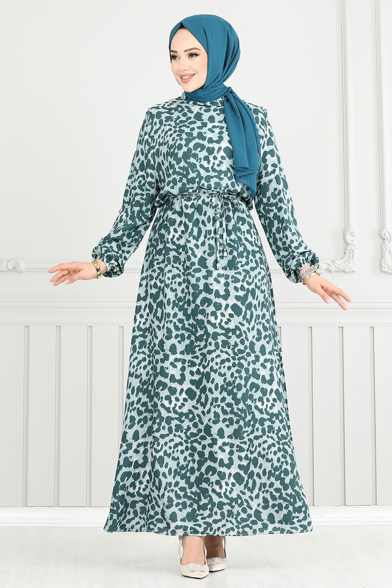 Modern ve şık tercihlerinizi yansıtan Leopar Desen Viskon Elbise, dört mevsim rahatlıkla kullanabileceğiniz bir tesettür modelidir. Viskon kumaşın konforunu ve yumuşak dokunuşunu üzerinizde hissedeceğiniz bu elbise, elde yıkanmalıdır. Yarım hakim yaka tasarımı ile zarif bir görünüm sunarken, sırttan fermuar detayı kullanım kolaylığı sağlar. Astarsız yapısı ve manşetleri lastikli olması, rahat hareket etmenizi destekler. İki ucu dikilmiş ve ortası boş bırakılmış kemer detayı ile farklı bir stil yakalamak elinizde. Kemer, ürüne dahil olup, isteğe bağlı olarak kullanılabilir.