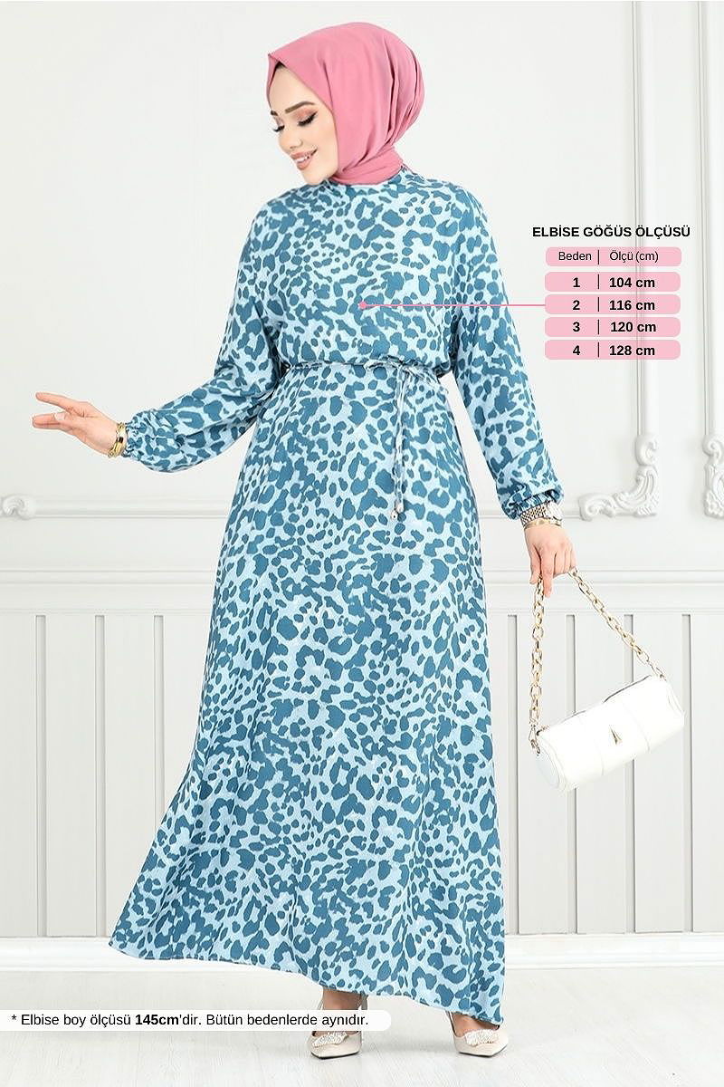 Leopar Desen Viskon Elbise 803OZR1047-M İndigo