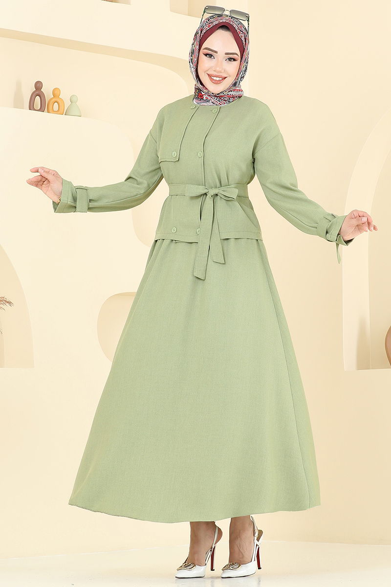 Ürün Özelliği : Yeni sezon tesettür moda ürünüdür. Ürün Bisiklet yakadır. Ürün Önden düğmelidir. Astarsızdır. Etek beli lastiklidir. Konsept fotoğraf çekimlerinden dolayı üründe ton farklılığı olabilir.
