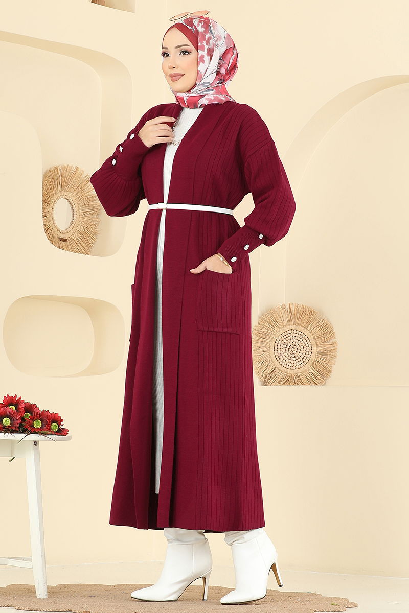Manşeti Aksesuar Düğmeli Hırka 7146BRZ597 Bordo