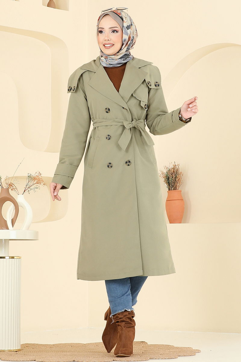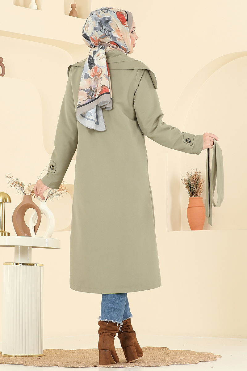 Manşeti Aksesuar Düğmeli Trençkot Çağla