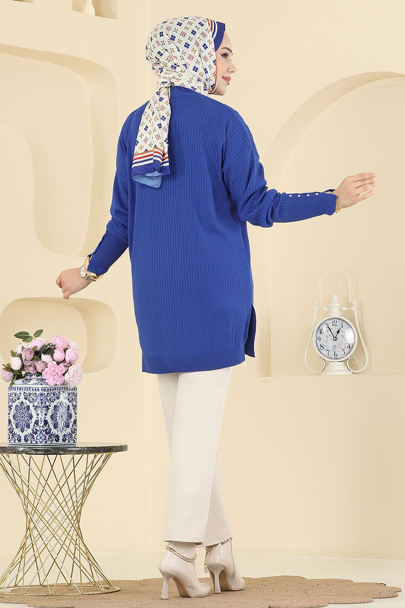 Ideal for autumn and winter, the Cuff Accessory Buttoned Tunic! This product can be washed at 30 degrees with delicate care and is made from knit fabric. The half-mandarin collar and side-slit design add a modern and stylish flair, while the buttons on the cuffs provide a subtle accessory detail. Designed in a standard size and without lining.