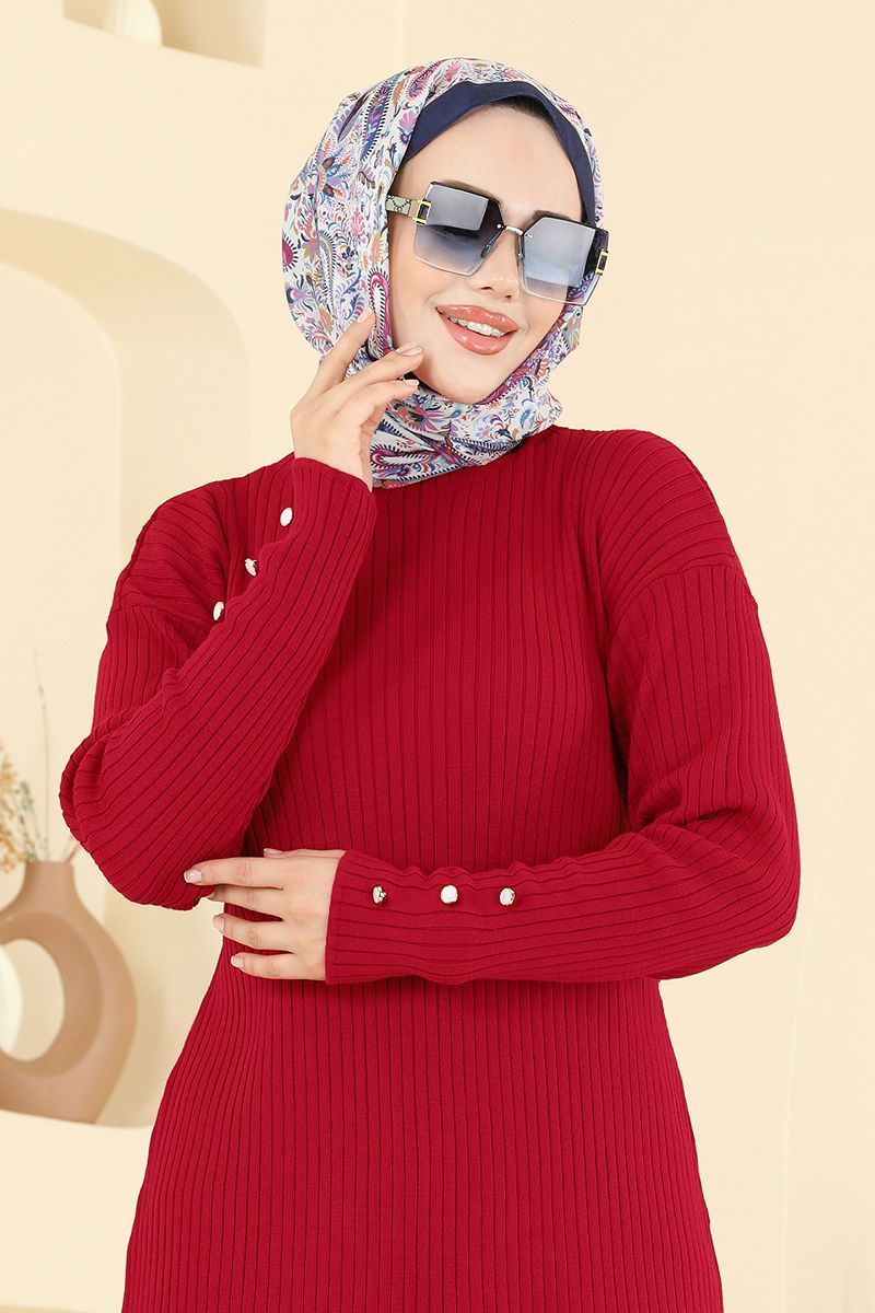 Manşeti Aksesuar Düğmeli Tunik 2714AYD574 Kırmızı