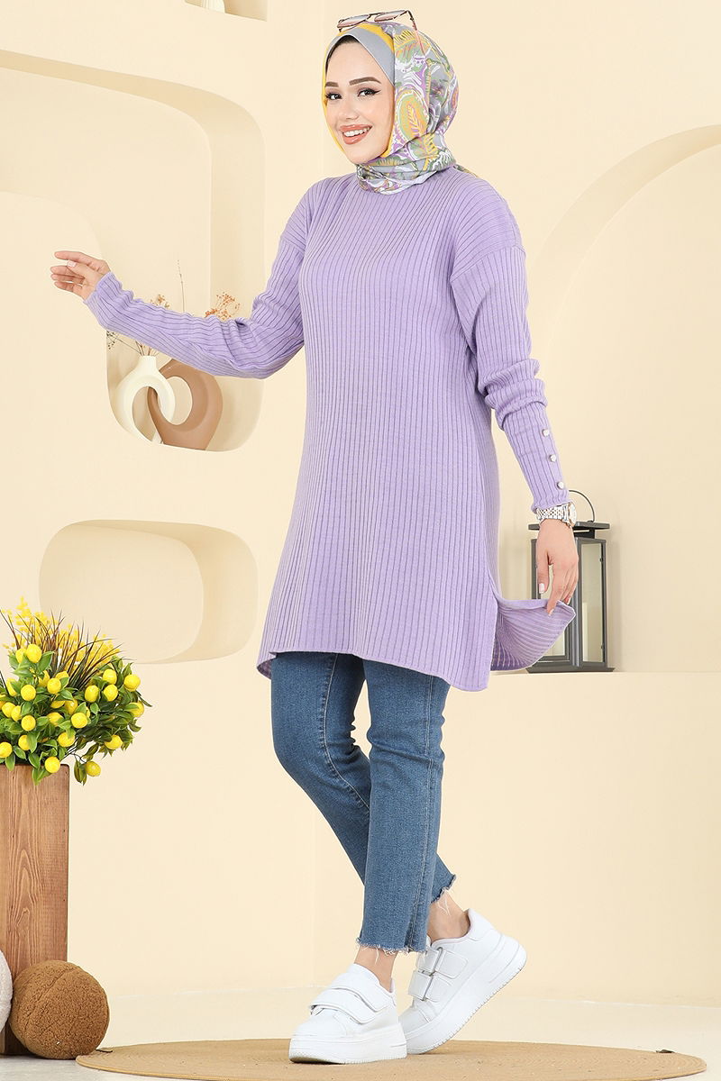 Manşeti Aksesuar Düğmeli Tunik Lila