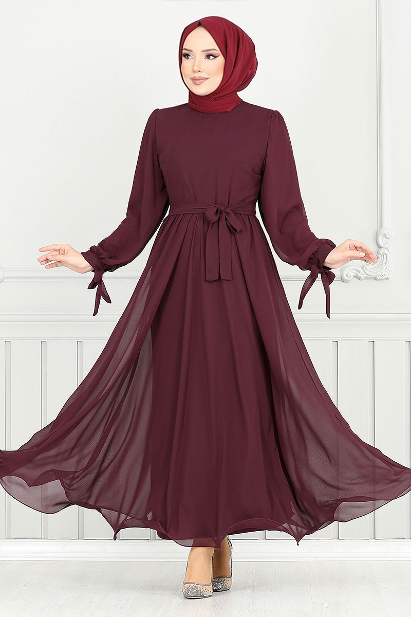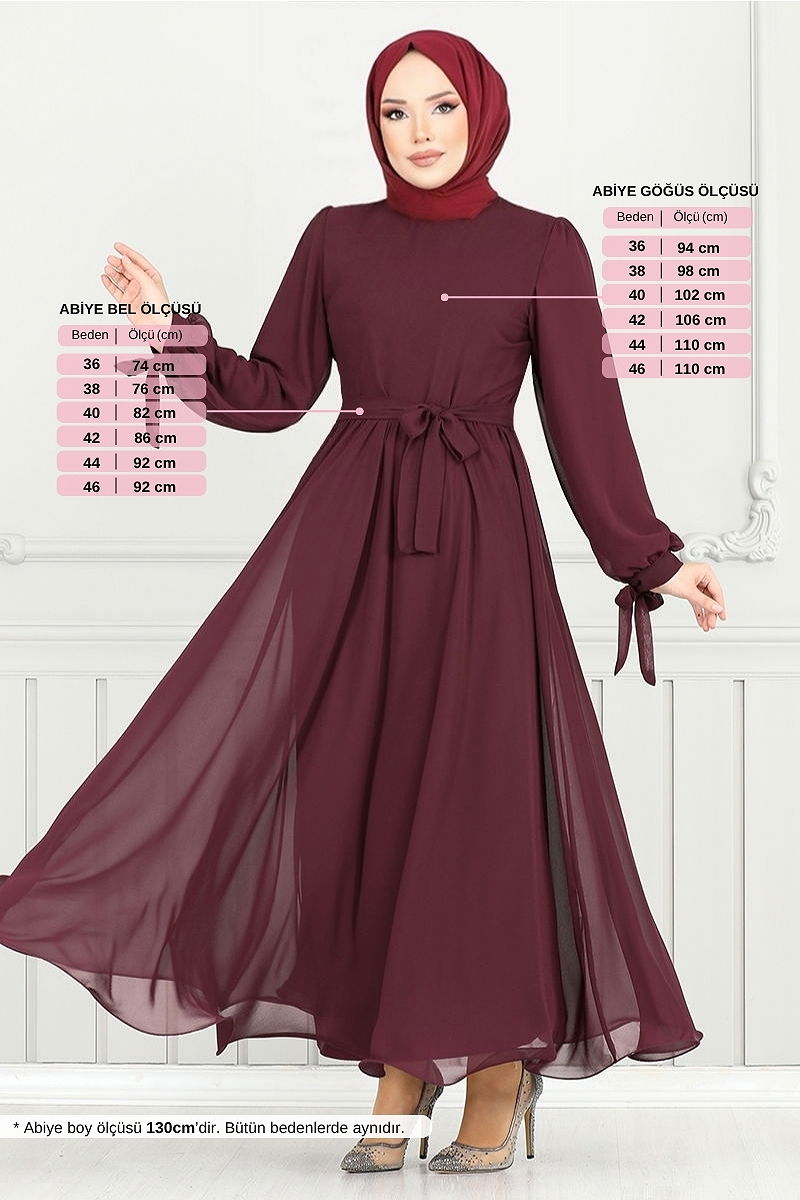 Elegant and chic, the Lace-Up Cuff Evening Dress is specially designed for women who prefer modest attire. Suitable for all seasons, this dress should only be dry cleaned. Made from chiffon fabric, it offers comfort and elegance with its bike-neck design and lined structure. The back-zippered design facilitates easy wearing, while the stitched waist belt adds a touch of grace. The belt is intricately designed to prevent waviness and can be removed if desired. The lace-up cuffs make this dress perfect for those seeking sophisticated elegance.