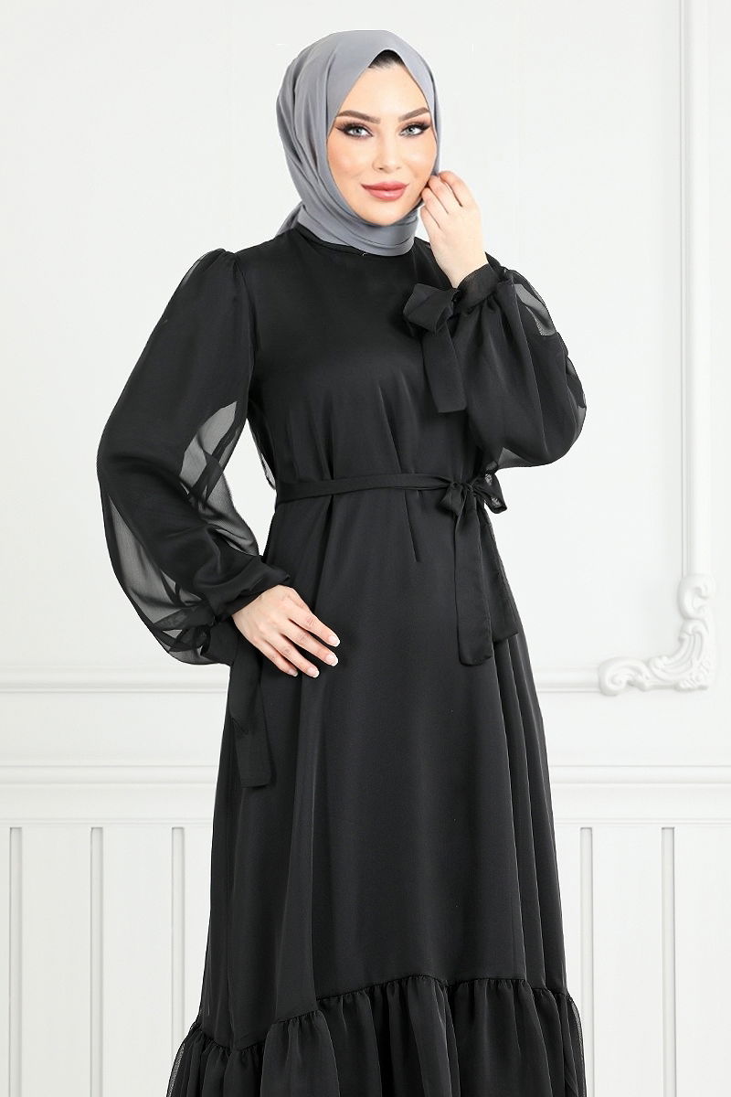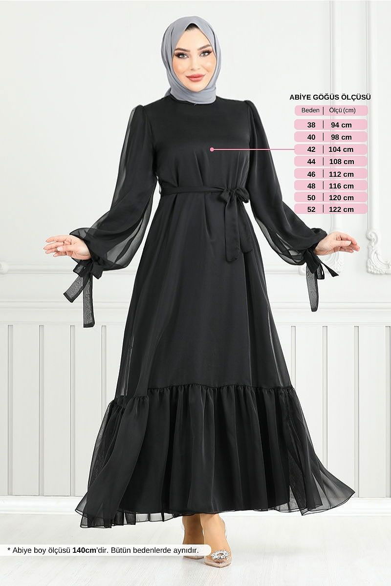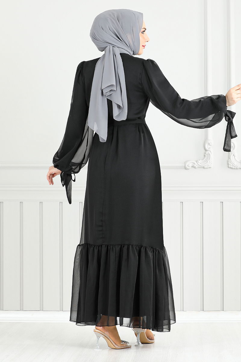 Manşeti Bağcıklı Abiye Siyah