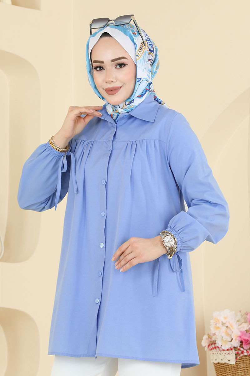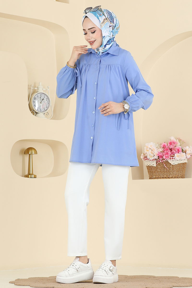Manşeti Bağcıklı Terikoton Gömlek 337ASN888 Bebe Mavisi