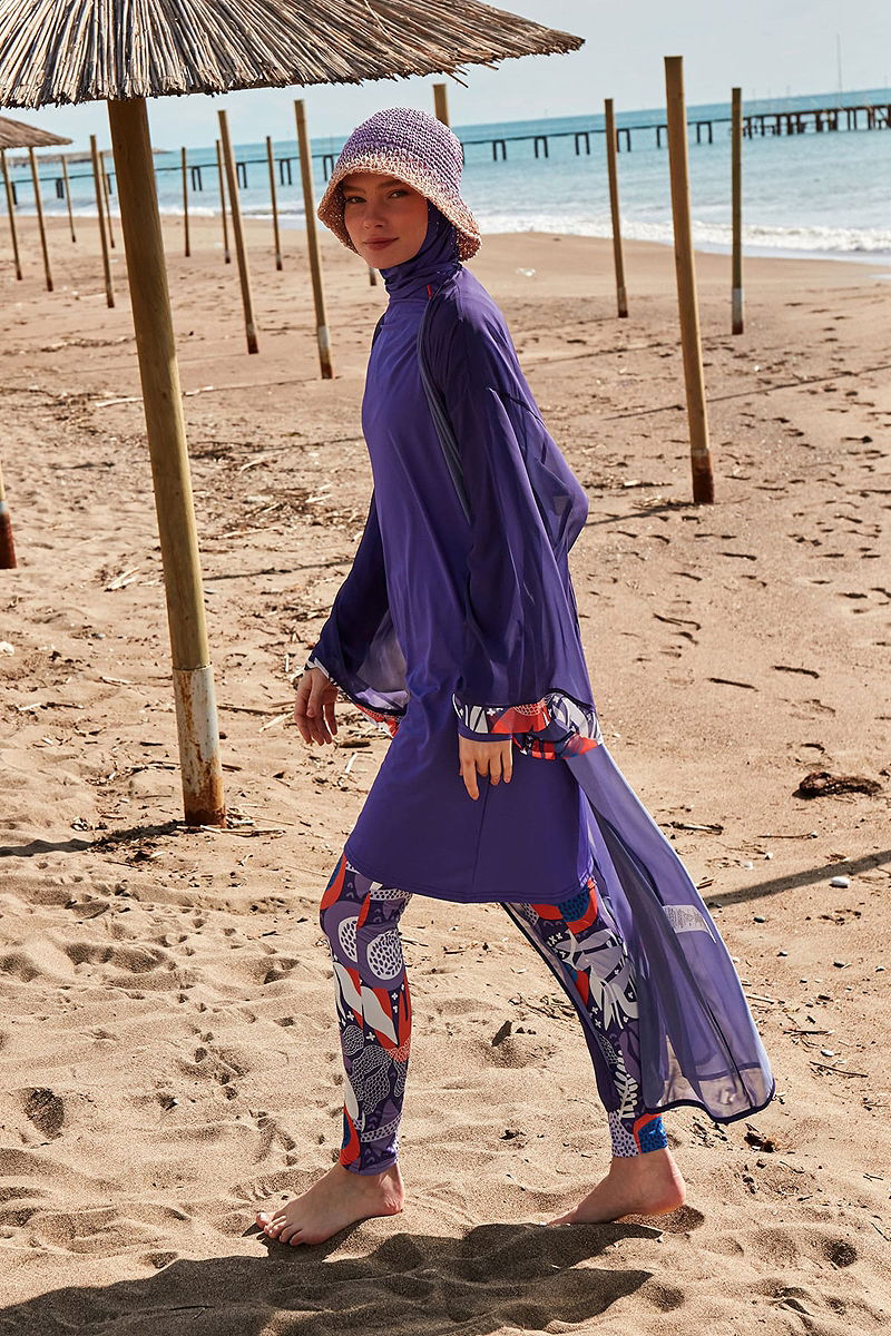 Manşeti Desenli Kadın Pareo Mor