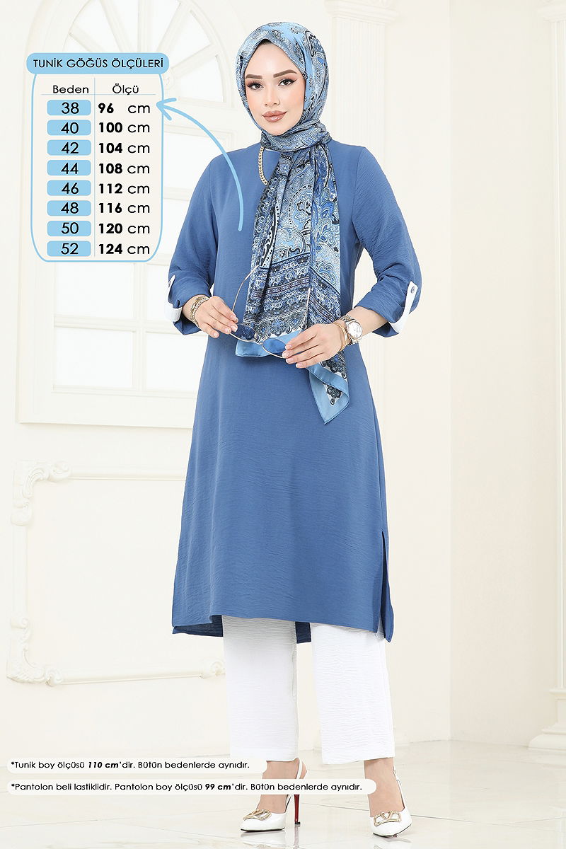 يوجد زر يمكن استخدامه من الخلف. المنتج لديه ياقة دائرية. البلوز تحتوي على فتحة. غير مبطنة. الملحقات غير متضمنة. خصر البنطال مرن. أزرار الكفة نشطة. قد يكون هناك اختلاف في الدرجة اللونية في المنتج بسبب التقاط الصور الفوتوغرافية.