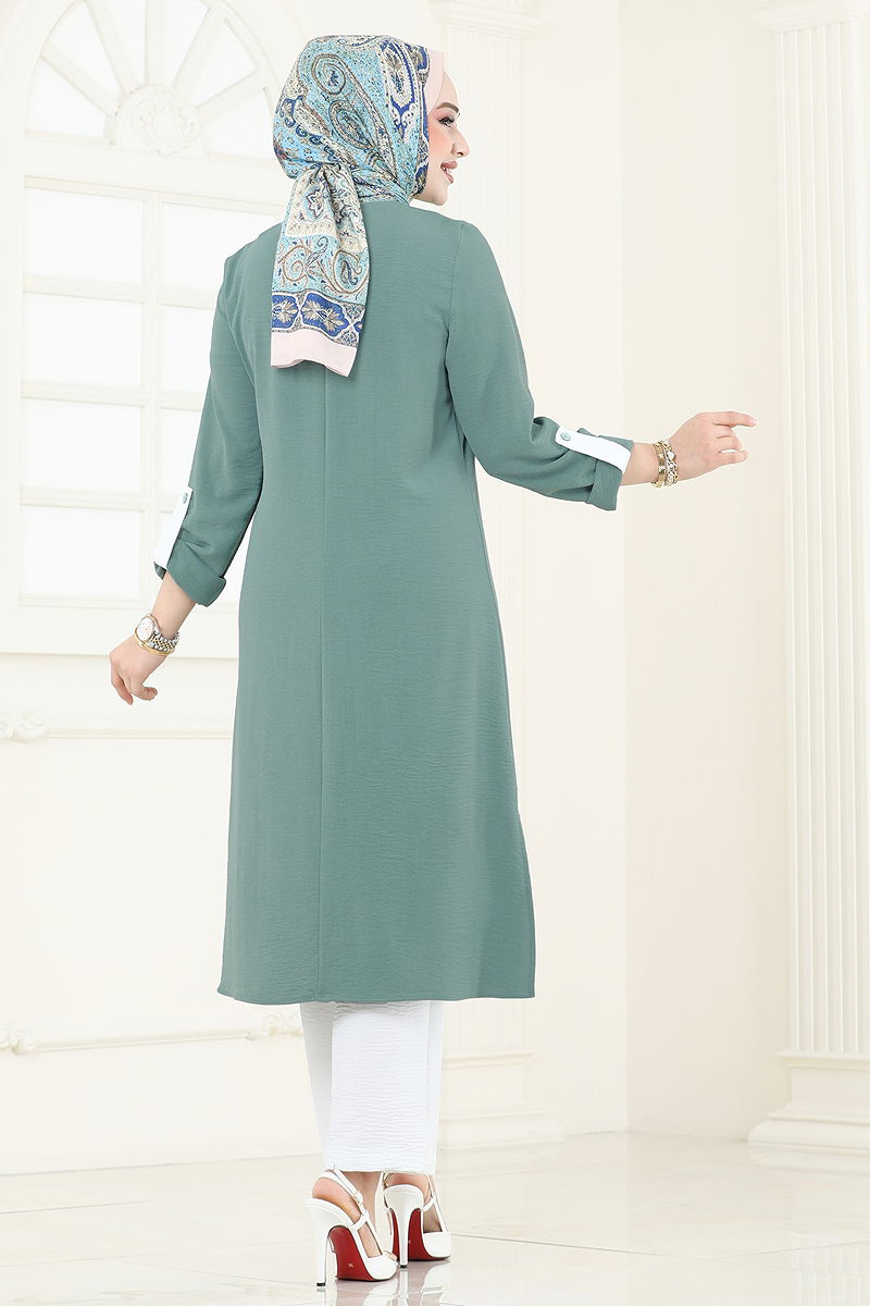 Ürün Özelliği : Yeni sezon tesettür moda ürünüdür. Sırttan kullanılabilir bir düğmesi bulunmaktadır. Ürün Bisiklet yakadır. Tunik yandan yırtmaçlıdır.. Astarsızdır. Aksesuarlar ürüne dahil değildir. Pantolon beli lastiklidir. Manşet düğmeleri aktiftir. Konsept fotoğraf çekimlerinden dolayı üründe ton farklılığı olabilir.