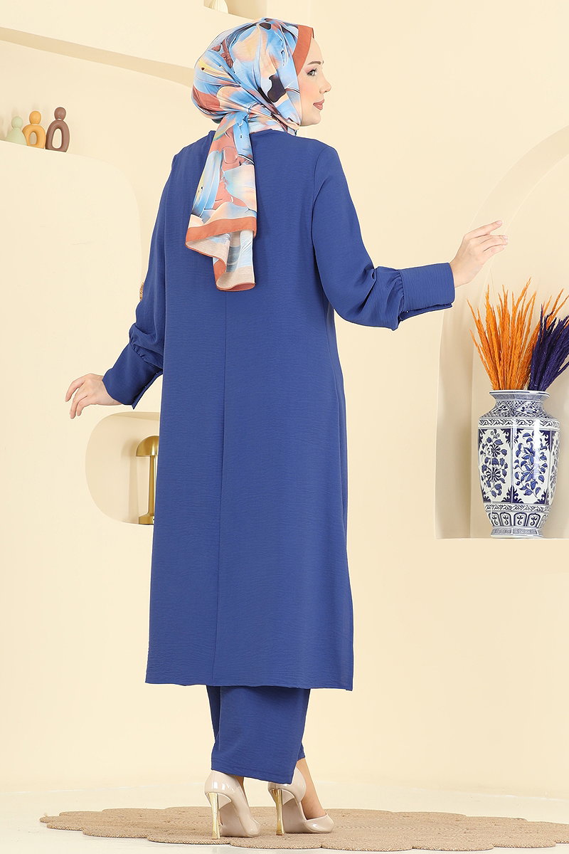 Rahat ve şık bir görünüm sunan Manşeti Düğmeli Aerobin Takım, bisiklet yakaya ve yandan yırtmaçlı tuniğe sahiptir. Dört mevsim boyunca keyifle kullanabileceğiniz bu tesettür ürünü, aerobin kumaştan üretilmiştir ve 30 derecede hassas yıkama yapılabilir. Tunik sırttan düğme detayına ve pantolon elastik bel yapısına sahiptir, manşet düğmeleri aktiftir. Konforunuz ve şıklığınız için ideal bir seçim!