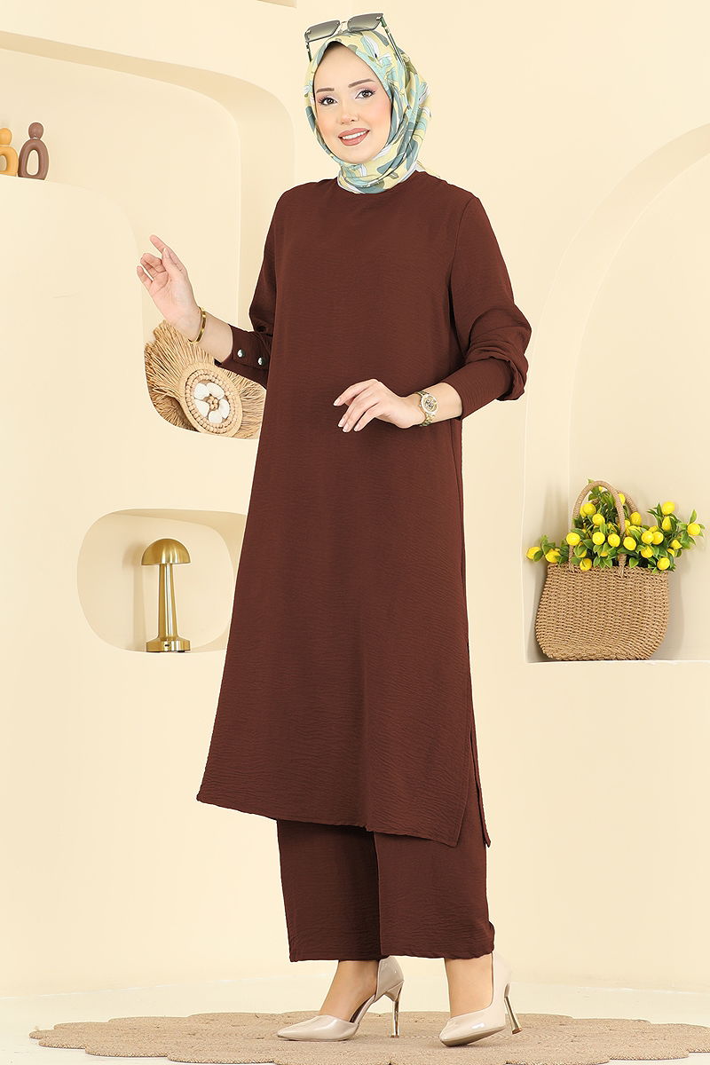 Manşeti Düğmeli Aerobin Takım PL9207 Kahve