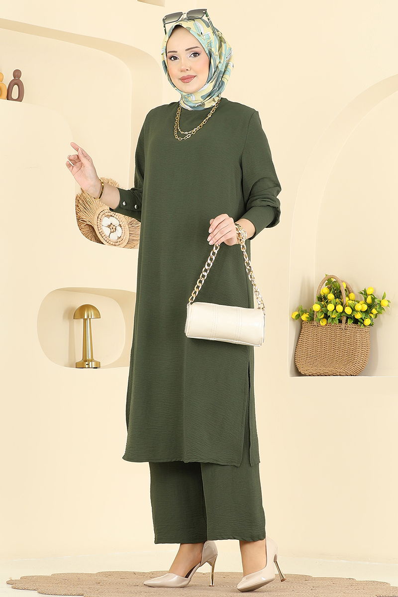 Manşeti Düğmeli Aerobin Takım PL9207 Koyu Haki