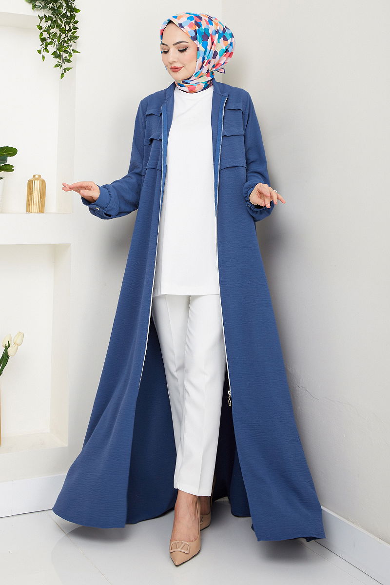Manşeti Düğmeli Ferace 2018EFY931-M İndigo