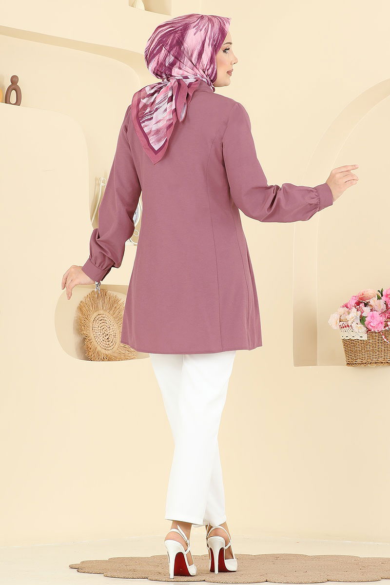 Manşeti Düğmeli Terikoton Gömlek 500ASN888 Koyu Gül Kurusu