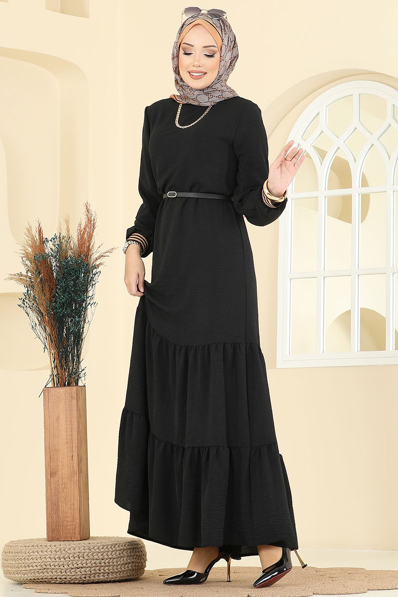 Manşeti Garni Detaylı Aerobin Elbise 5006MDA386 Siyah