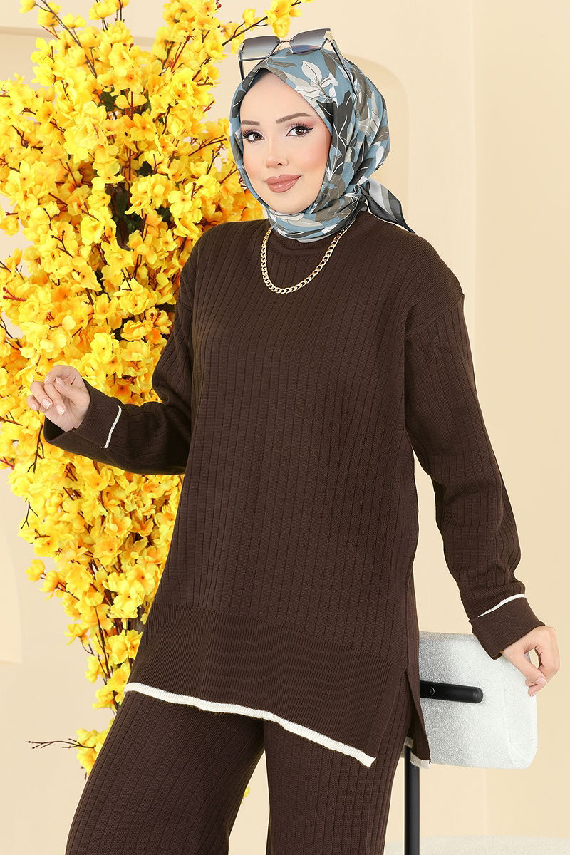 Manşeti Katlı Triko Takım 8071KLB1050 Kahve