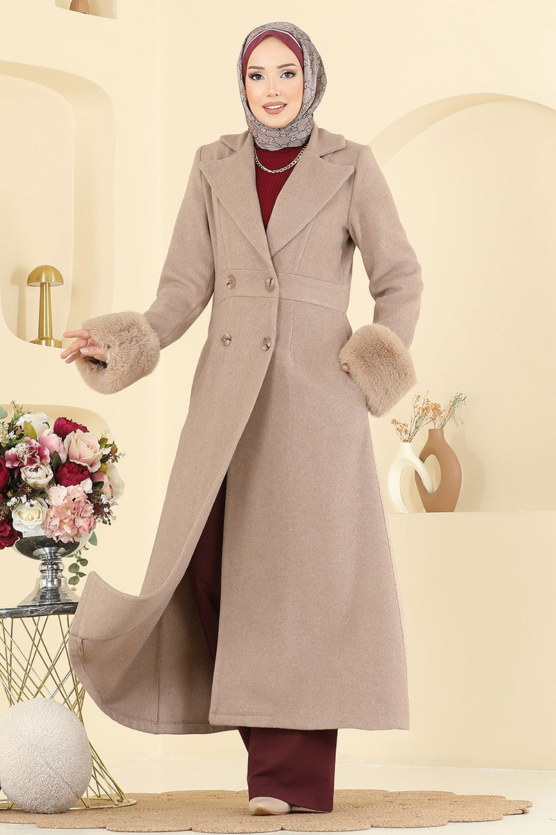 Ürün Özelliği : Yeni sezon tesettür moda ürünüdür. Ürün Ceket yakadır. Astarsızdır. Kürk ürüne dahildir, isteğe bağlı kullanılmayabilir. Düğmeler aktiftir. Aksesuarlar ürüne dahil değildir. Cep mevcuttur. Konsept fotoğraf çekimlerinden dolayı üründe ton farklılığı olabilir.