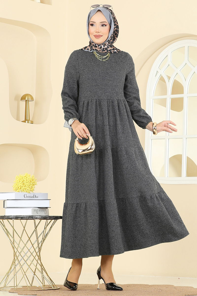 Manşeti Lastik Detaylı Elbise 3065KTR750 Gri