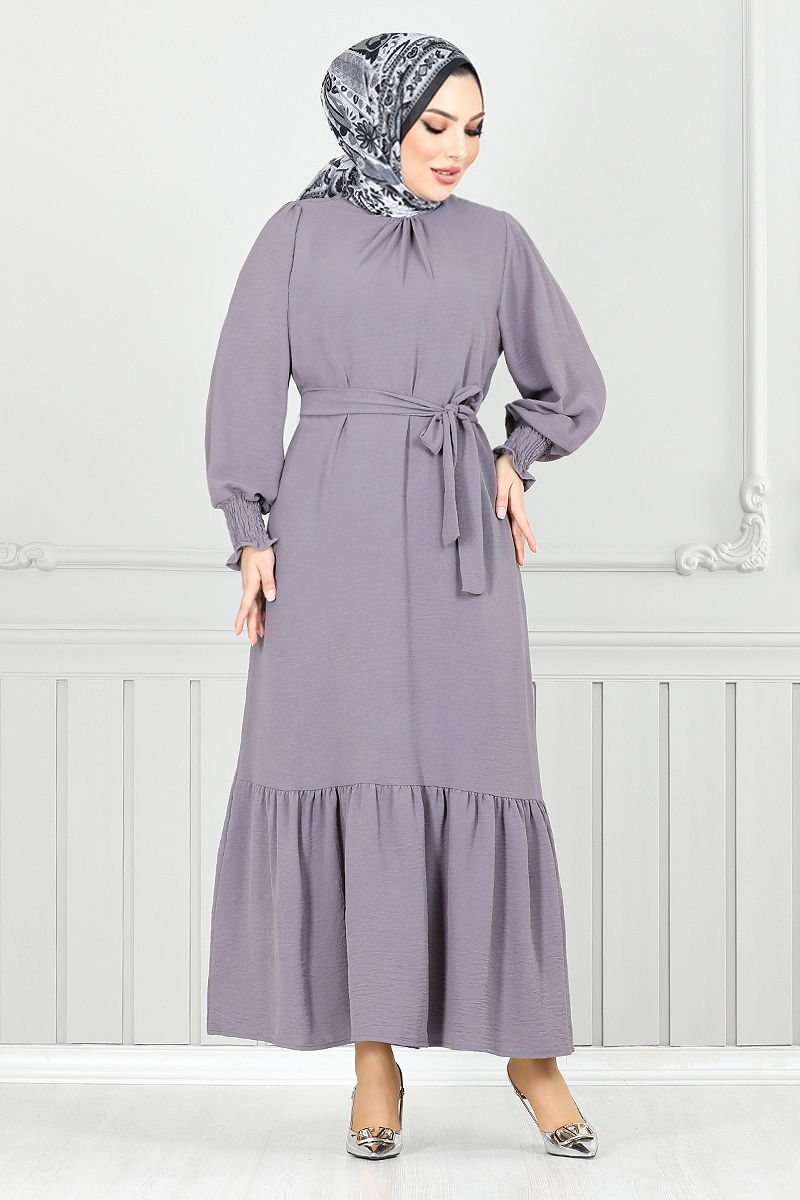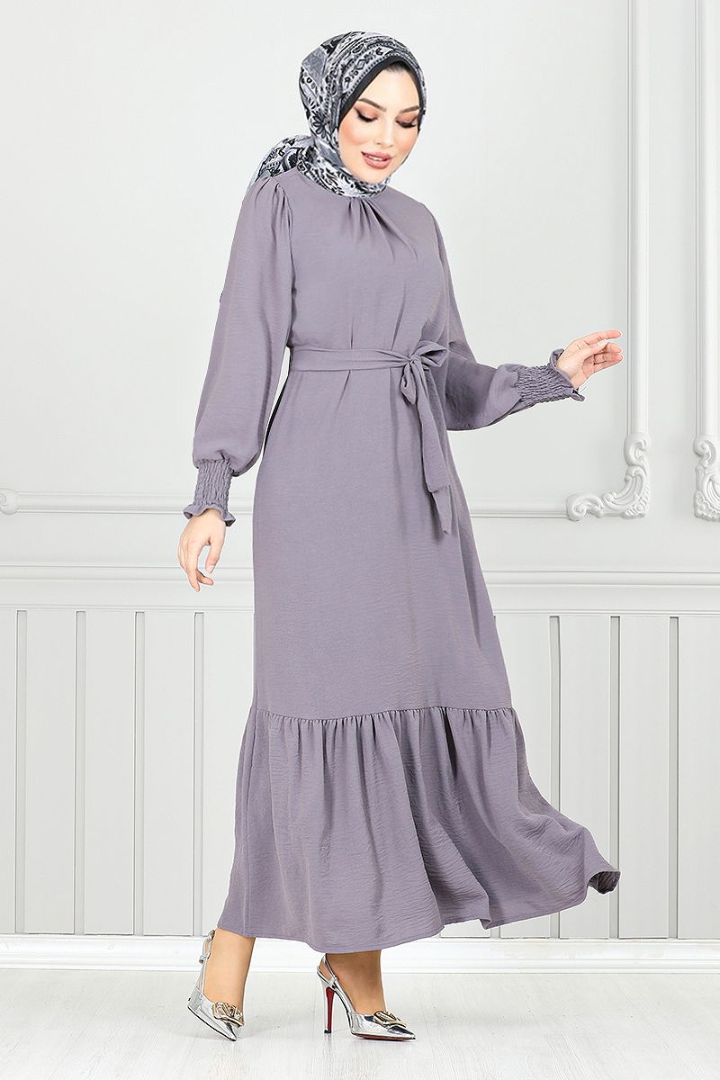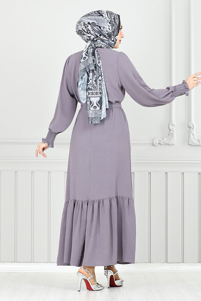 Manşeti Lastikli Aerobin Elbise 401ART1044-M Gri