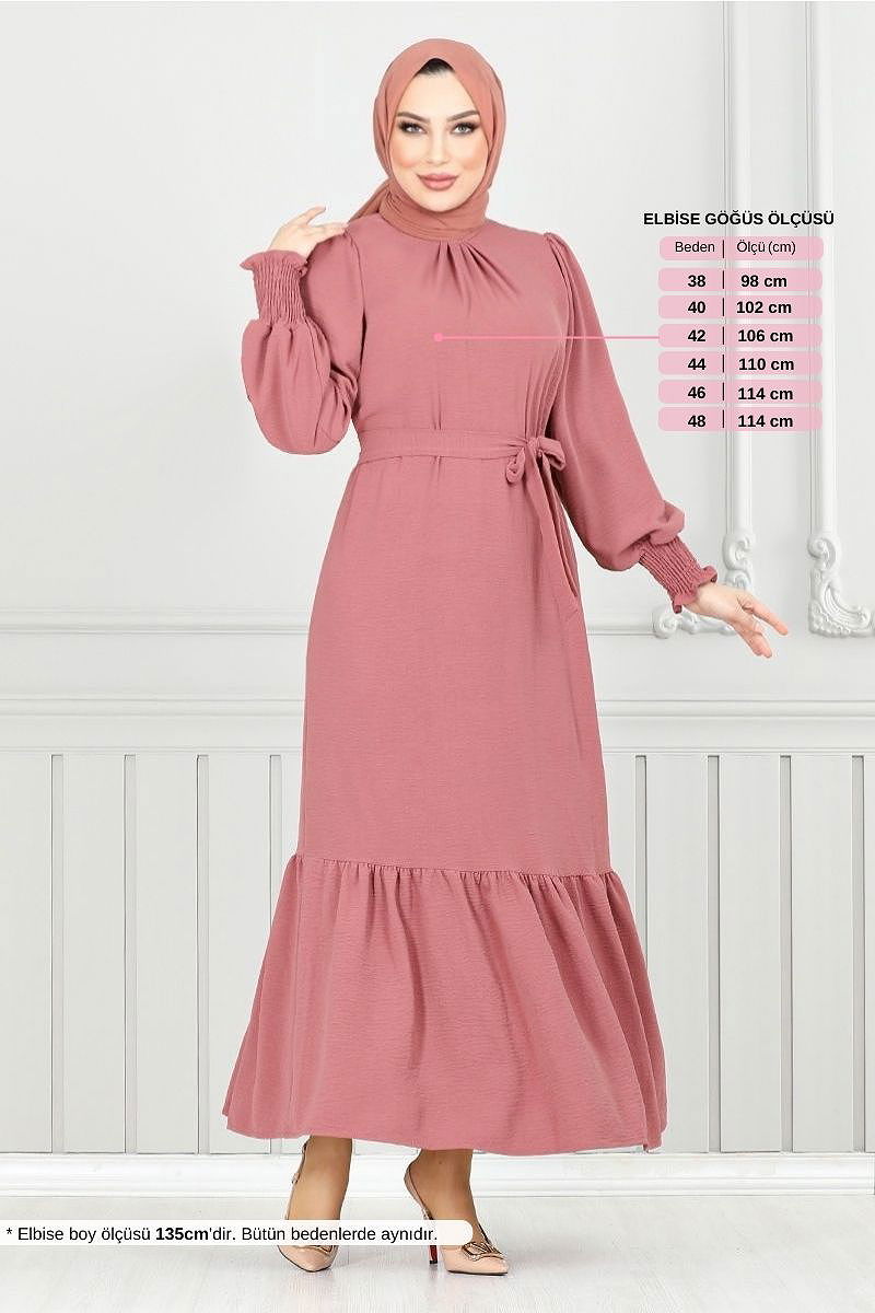 Manşeti Lastikli Aerobin Elbise 401ART1044-M Gül Kurusu