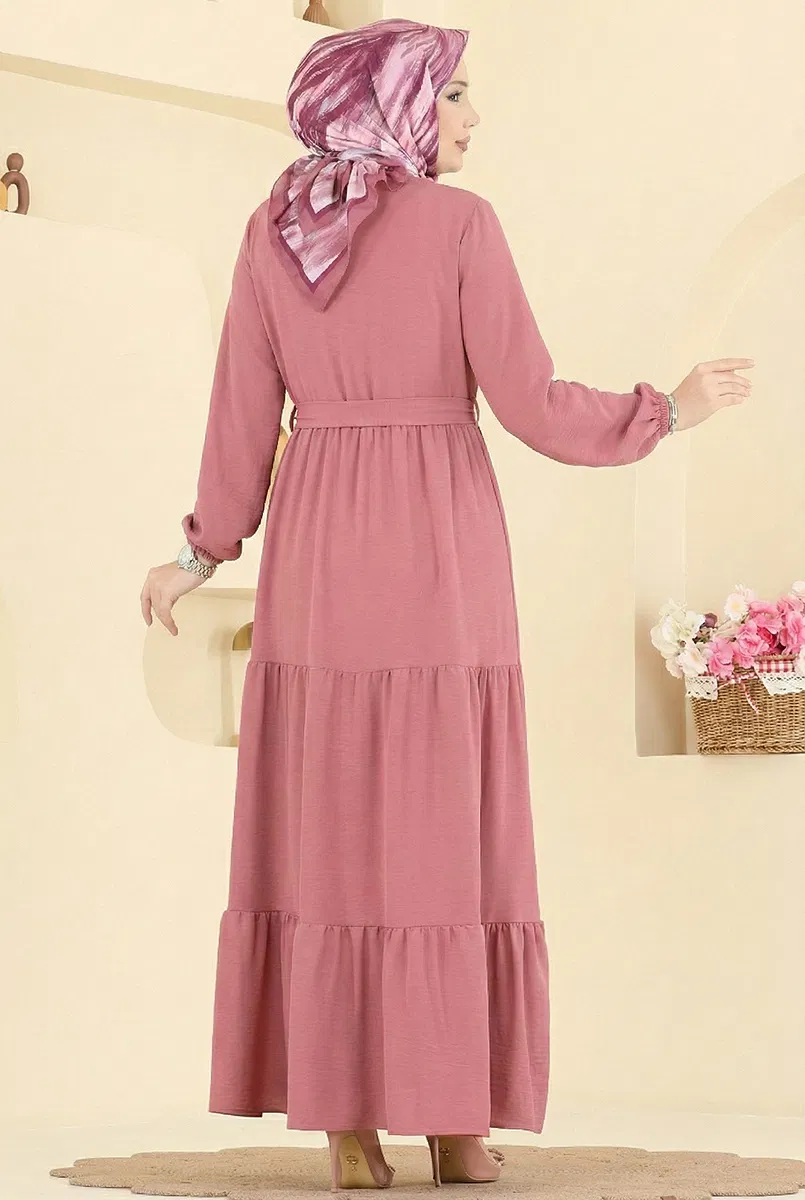 Manşeti Lastikli Aerobin Elbise 5003BM387 Gül Kurusu