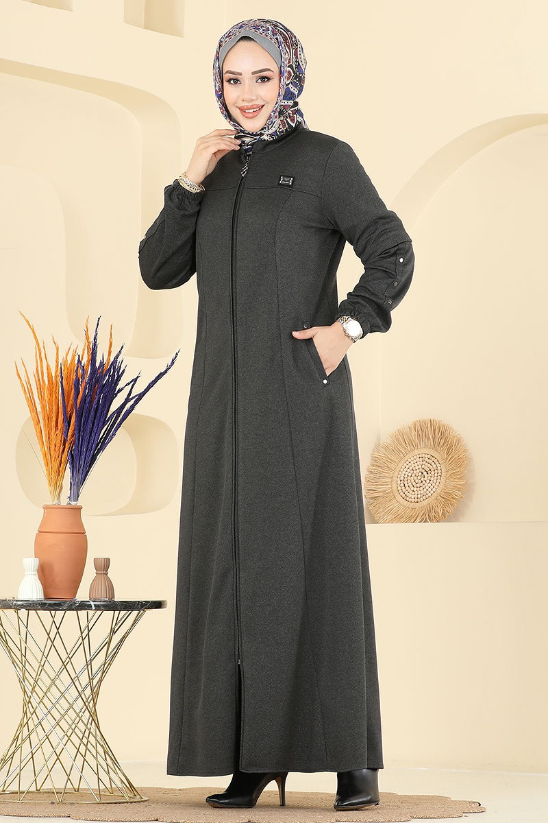 Bu son derece şık Manşeti Lastikli Atlas Ferace, her mevsim rahatlıkla kullanabileceğiniz bir tesettür giysisidir. Hassas ve 30 derecede sıkılmadan yıkanabilir atlas kumaştan üretilmiş olup yarım hakim yaka tasarımına sahiptir. Ferace, astarsızdır ve ön kısmında kullanışlı bir fermuar bulunmaktadır. Kolayca ayarlanabilir manşetleri ve pratik cep detayı ile konforlu bir kullanım sunar. Omuzlarındaki vatka detayı ise şık bir görünüm sağlar.