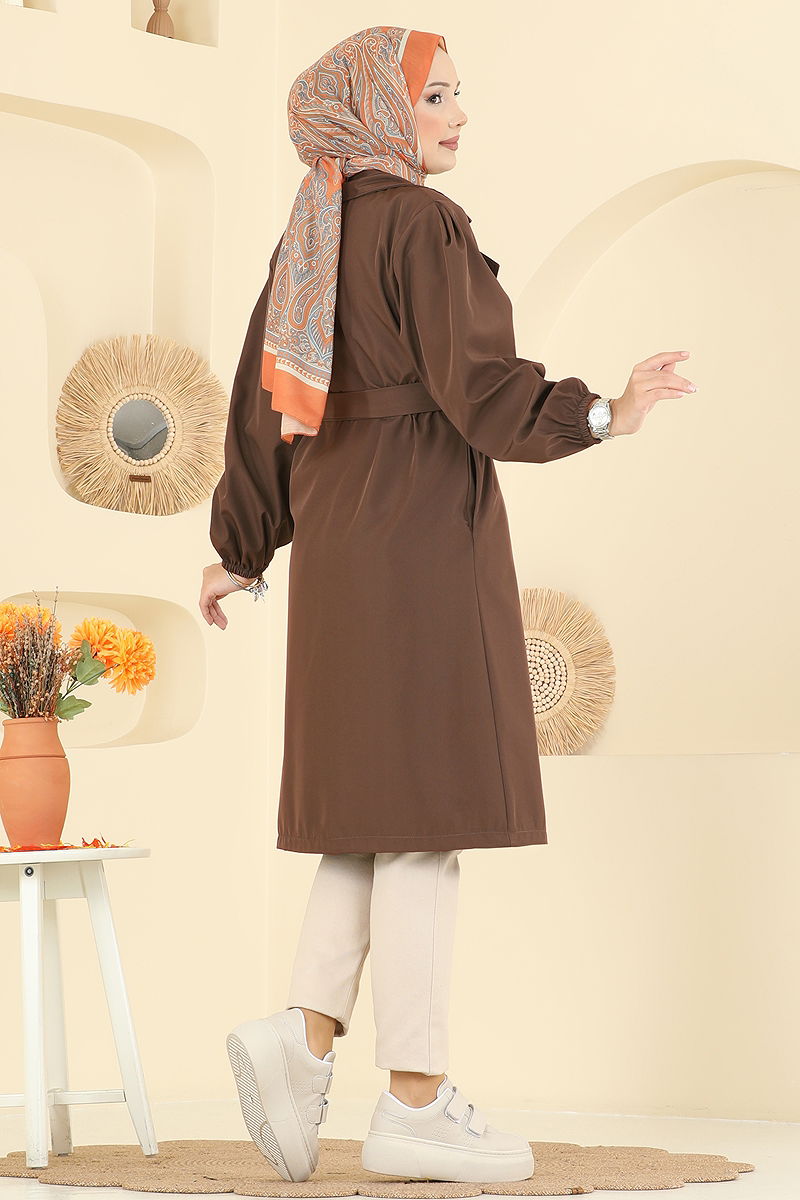 Manşeti Lastikli Bondit Trençkot 8005TEG847 Kahve