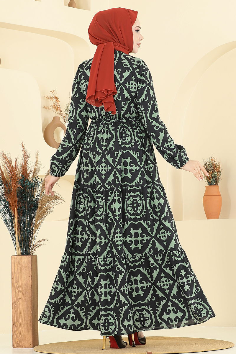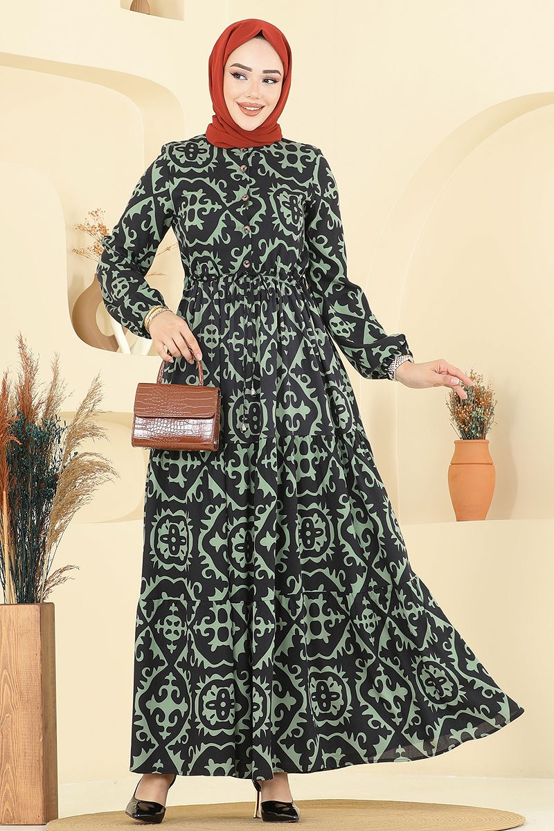 Tanıtımımızdaki bu stil sahibi Desenli Elbise, dört mevsim boyunca rahatlıkla kullanılabilir. Özenle seçilmiş viskon kumaştan üretilen elbise, hem şık hem de konforlu bir alternatif sunuyor. Yarım Hakim yaka ve ön yüzünde yer alan yarım düğmeler ile pratik bir kullanım sağlar. Astarsız yapısıyla hafifliği ön planda tutarken, manşetlerdeki lastik detaylar elbiseye modern bir dokunuş katıyor. Elde yıkama önerisi ile uzun ömürlü kullanım için idealdir. Beli bağcıklı tasarımı ise vücut hatlarınıza uyum sağlar, şıklığınızı tamamlar.