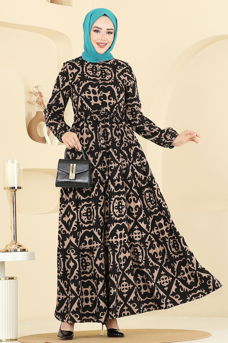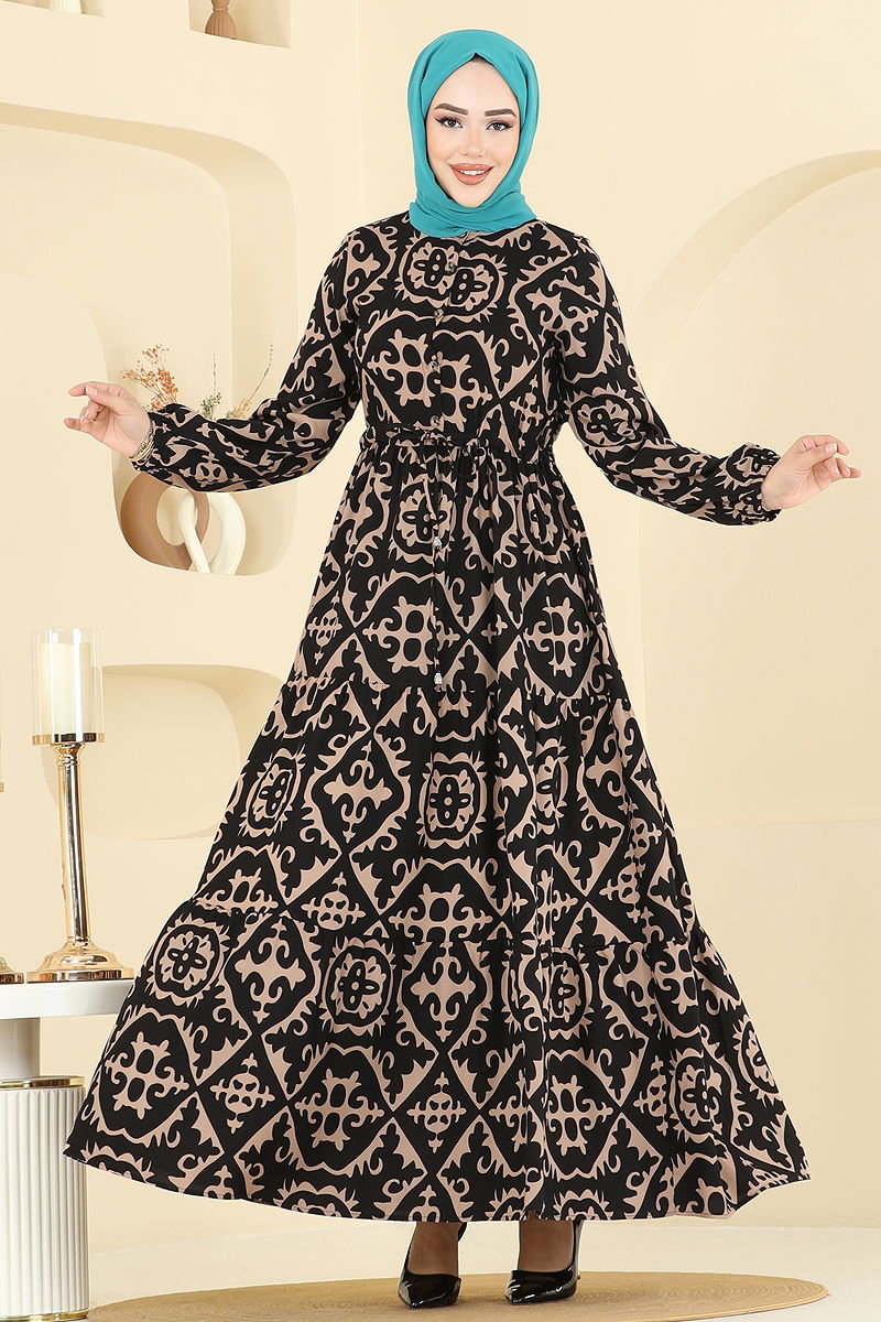 Tanıtımımızdaki bu stil sahibi Desenli Elbise, dört mevsim boyunca rahatlıkla kullanılabilir. Özenle seçilmiş viskon kumaştan üretilen elbise, hem şık hem de konforlu bir alternatif sunuyor. Yarım Hakim yaka ve ön yüzünde yer alan yarım düğmeler ile pratik bir kullanım sağlar. Astarsız yapısıyla hafifliği ön planda tutarken, manşetlerdeki lastik detaylar elbiseye modern bir dokunuş katıyor. Elde yıkama önerisi ile uzun ömürlü kullanım için idealdir. Beli bağcıklı tasarımı ise vücut hatlarınıza uyum sağlar, şıklığınızı tamamlar.
