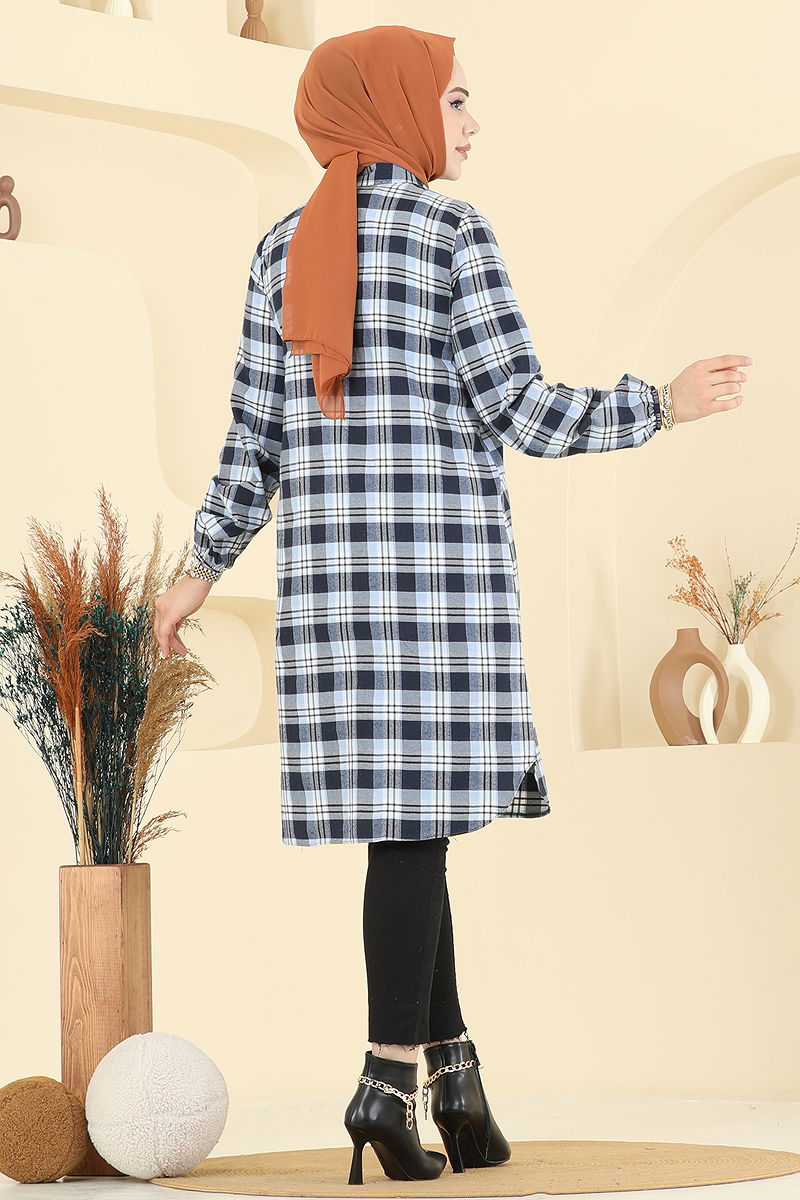 Manşeti Lastikli Ekose Tunik Bebe Mavisi