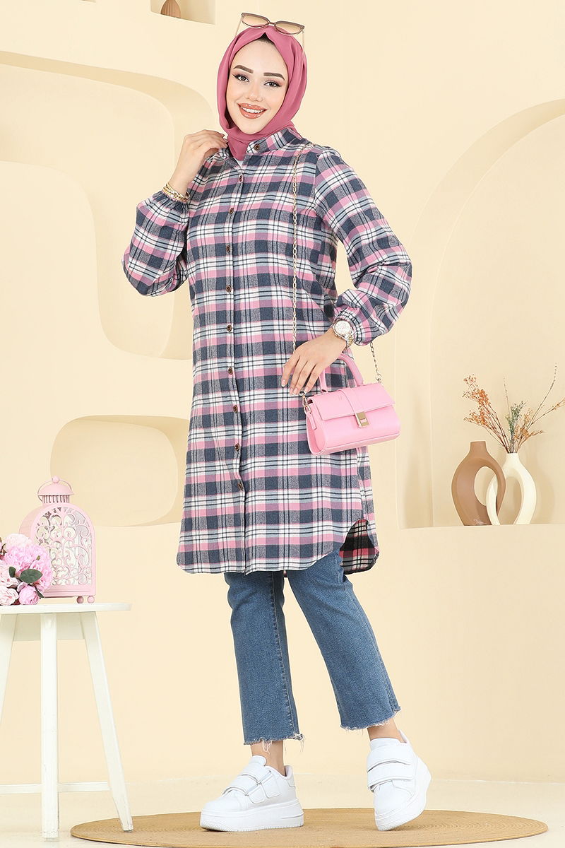 Sonbahar ve kış aylarının vazgeçilmezi, şık ve konforlu bir seçenek olan Manşeti Lastikli Ekose Tunik, tesettür giyimde zarafeti ve sıcaklığı bir araya getiriyor. 30 derecede hassas yıkama ile kolayca temizleyebileceğiniz bu tunik, önden düğmeli tasarımıyla pratik bir kullanım sunar. Astarsız yapısı ve lastikli manşetleri ile gün boyu rahatlık sağlar. Model üzerindeki 38 beden, her bedene uygun şıklık sunmayı vaat ediyor.
