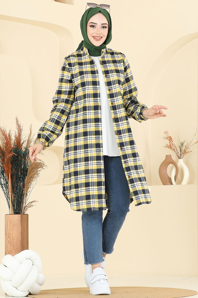 Sonbahar ve kış aylarının vazgeçilmezi, şık ve konforlu bir seçenek olan Manşeti Lastikli Ekose Tunik, tesettür giyimde zarafeti ve sıcaklığı bir araya getiriyor. 30 derecede hassas yıkama ile kolayca temizleyebileceğiniz bu tunik, önden düğmeli tasarımıyla pratik bir kullanım sunar. Astarsız yapısı ve lastikli manşetleri ile gün boyu rahatlık sağlar. Model üzerindeki 38 beden, her bedene uygun şıklık sunmayı vaat ediyor.