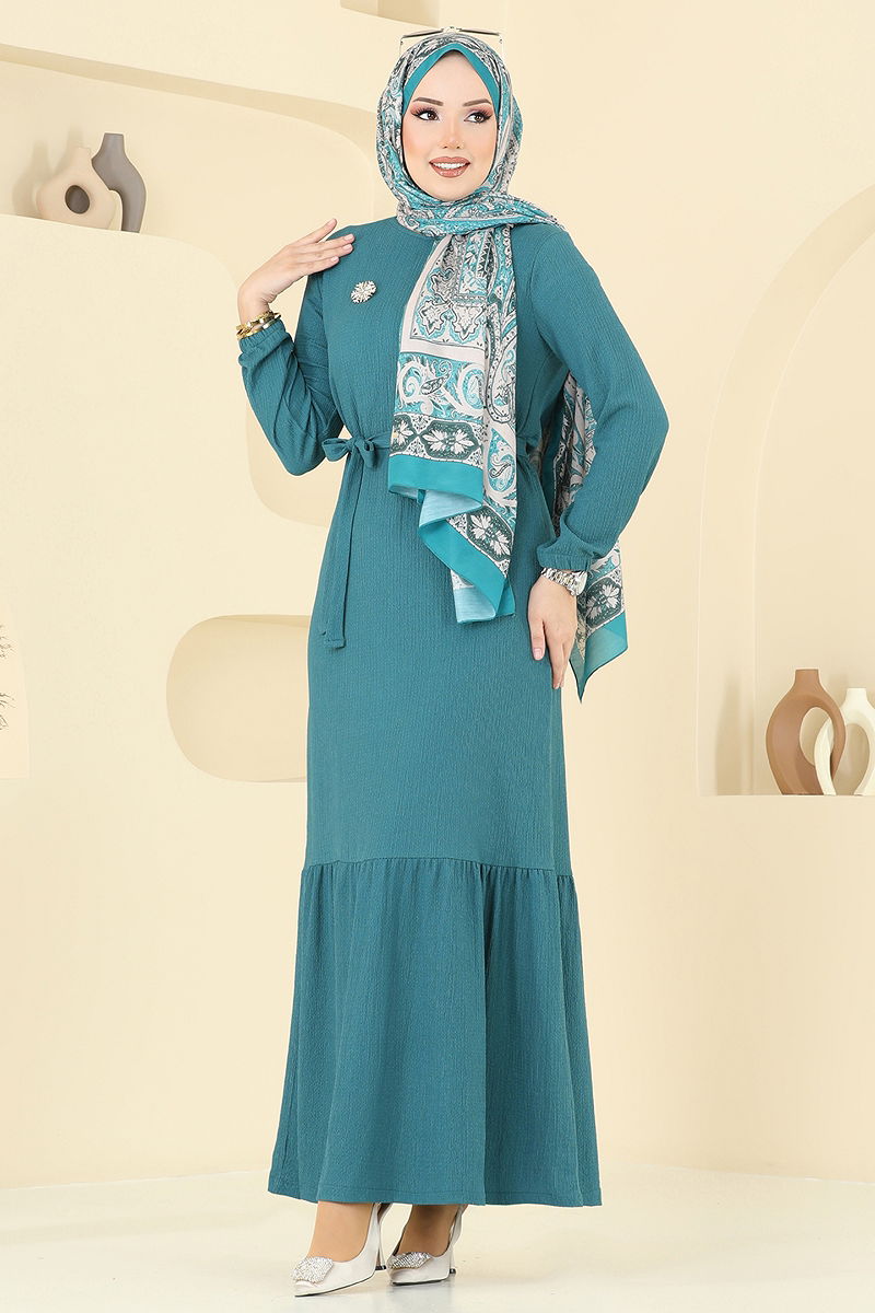 Ürün Özelliği : Yeni sezon tesettür moda ürünüdür. Ürün kafadan giyilmektedir. Ürün Bisiklet yakadır. Astarsızdır. Kemer ürüne dahildir, isteğe bağlı kullanılmayabilir. Aksesuarlar ürüne dahil değildir.Elbise düz inmektedir.Manşet lastiklidir. Konsept fotoğraf çekimlerinden dolayı üründe ton farklılığı olabilir.