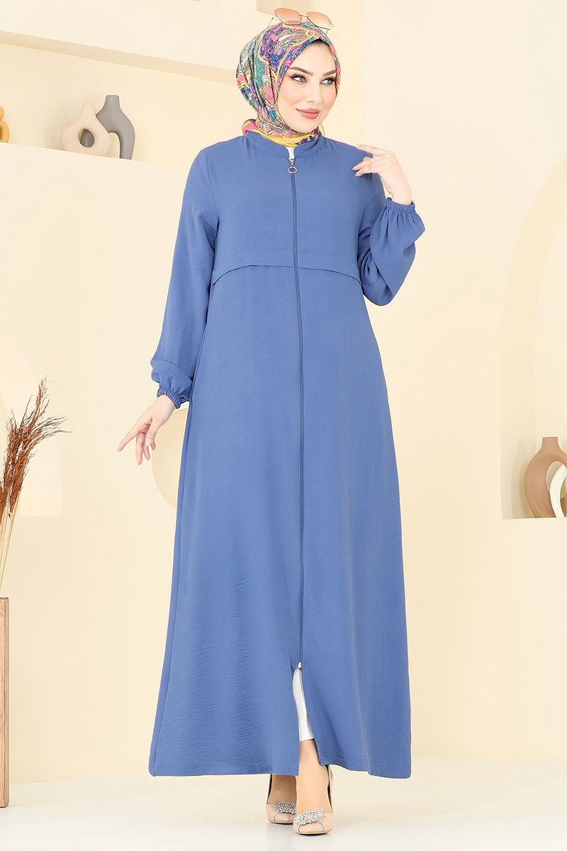Manşeti Lastikli Pardesü Ferace 376DVL817 İndigo