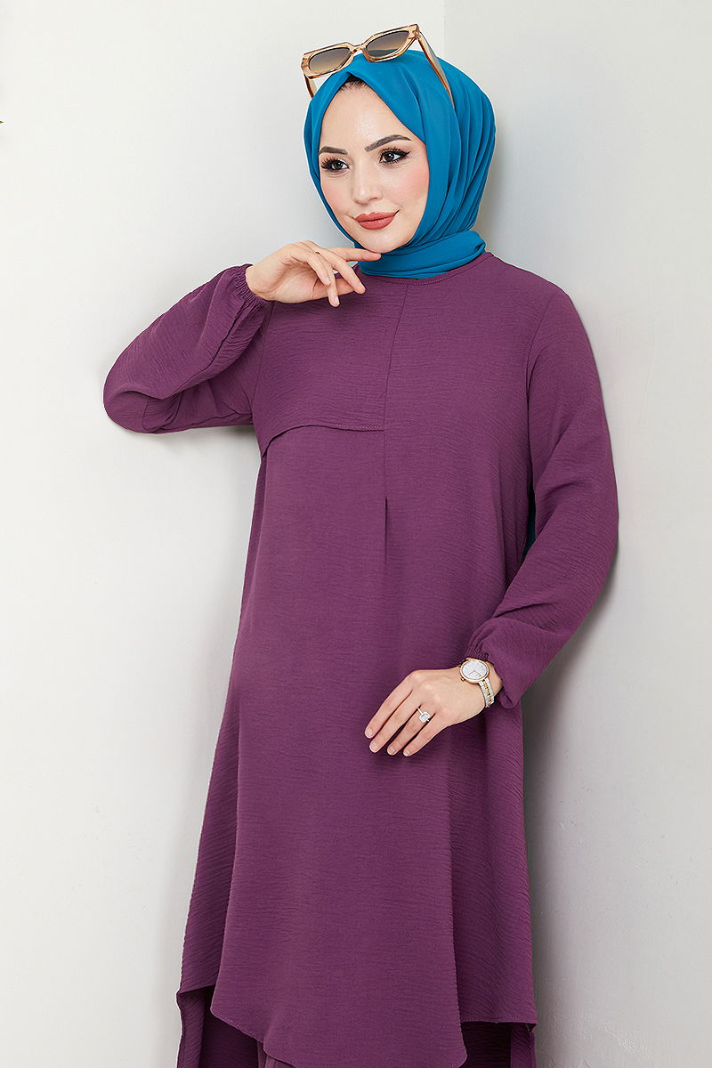 Ürün Özelliği : Yeni sezon tesettür moda ürünüdür. Sırttan kullanılabilir bir düğmesi bulunmaktadır. Ürün Bisiklet yakadır. Tunik yandan yırtmaçlıdır.. Astarsızdır. Pantolon beli lastiklidir. Manşeti lastiklidir. Konsept fotoğraf çekimlerinden dolayı üründe ton farklılığı olabilir.