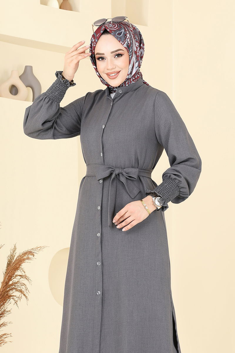 Ürün Özelliği : Yeni sezon tesettür moda ürünüdür. Ürün Hakim yakadır. Ürün Önden düğmelidir. Tunik yandan yırtmaçlıdır.. Astarsızdır. Kemer ürüne dahildir, isteğe bağlı kullanılmayabilir. Bluz ürüne dahil değildir. Ürün kullanım amacını göstermek için bluz ile örnek kombin yapılmıştır. Aksesuarlar ürüne dahil değildir. Pantolon beli lastiklidir. Manşeti lastiklidir. Konsept fotoğraf çekimlerinden dolayı üründe ton farklılığı olabilir.