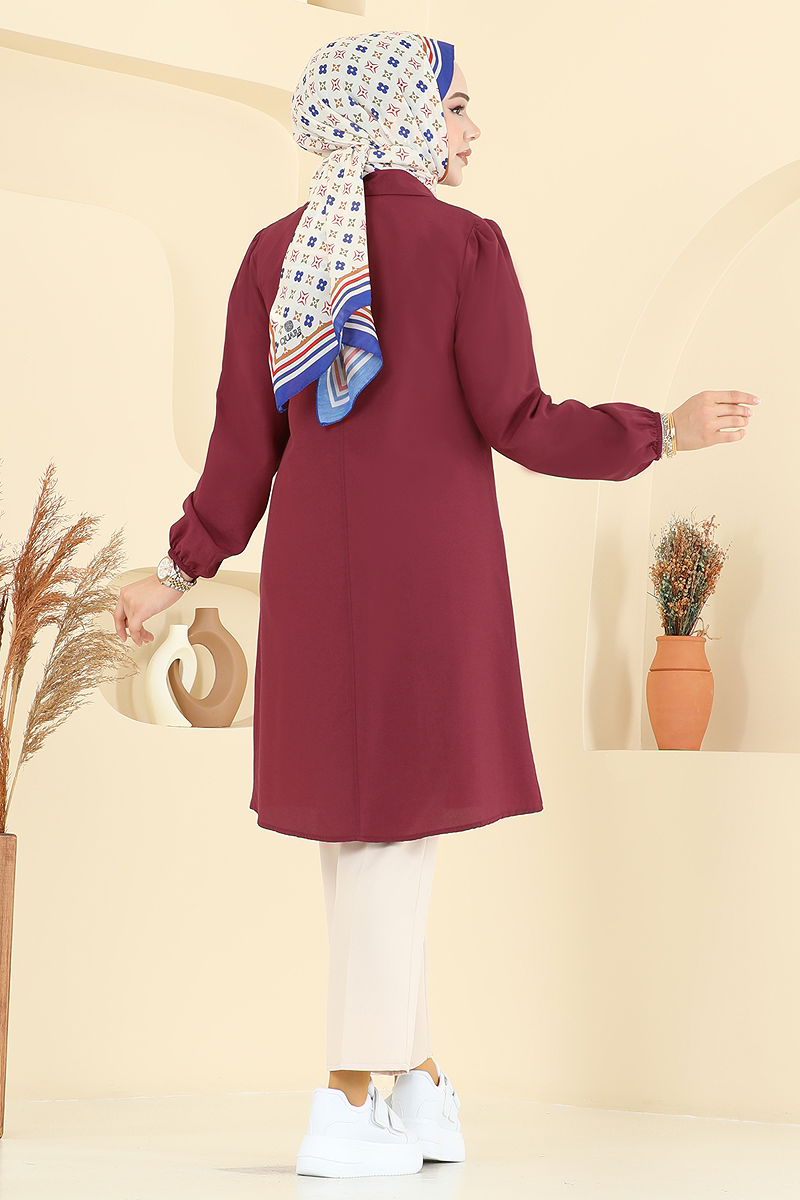 Bu şık ve rahat Manşeti Lastikli Terikoton Tunik, dört mevsim boyunca keyfini çıkarabileceğiniz ideal bir tesettür ürünüdür. Terikoton kumaştan üretilen bu tunik, hem şıklığı hem de konforu bir arada sunar. Gömlek yaka ve ön düğmeli tasarımı ile pratik bir kullanım sağlar. Elastik manşetleri sayesinde kolay bir giyim deneyimi sunar. Hassas yapısını korumak için 30 derecede sıkıştırmadan yıkayabilirsiniz. Günlük kullanımınızda rahatlık ve şıklığı bir arada arayanlar için ideal bir seçim.