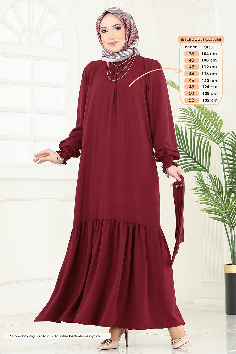 İster günlük kullanım, ister özel günlerinizde şıklığı yakalamak istediğinizde tercih edebileceğiniz Manşeti Lastikli Tesettür Elbise, dört mevsim boyunca konforunuzu ve şıklığınızı garanti ediyor. 30 derecede hassas yıkama önerilirken, aerobin kumaş yapısı sayesinde uzun süreli kullanım vaat ediyor. Hakim yaka ve sırttan fermuarlı tasarımı ile pratik bir kullanım sunuyor. Elastik manşetler hareket özgürlüğü sağlarken, dahil olan kemer ile farklı bir tarz yaratmanıza olanak tanıyor. Aksesuarlar dahil değildir.