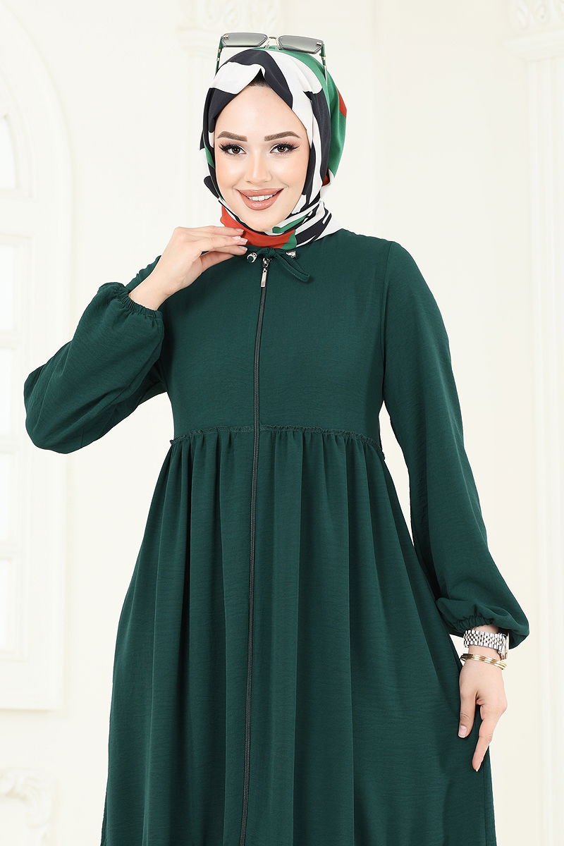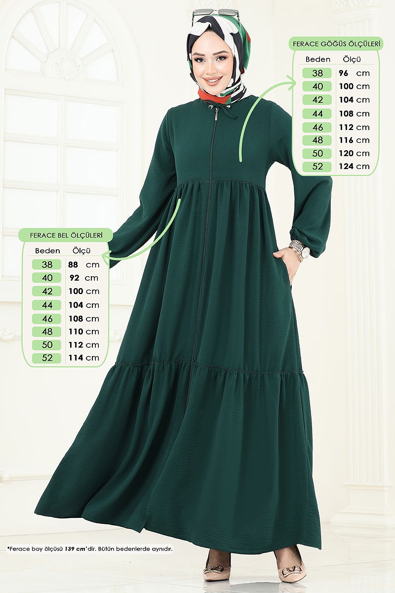 Manşeti Lastikli Tesettür Ferace Zümrüt