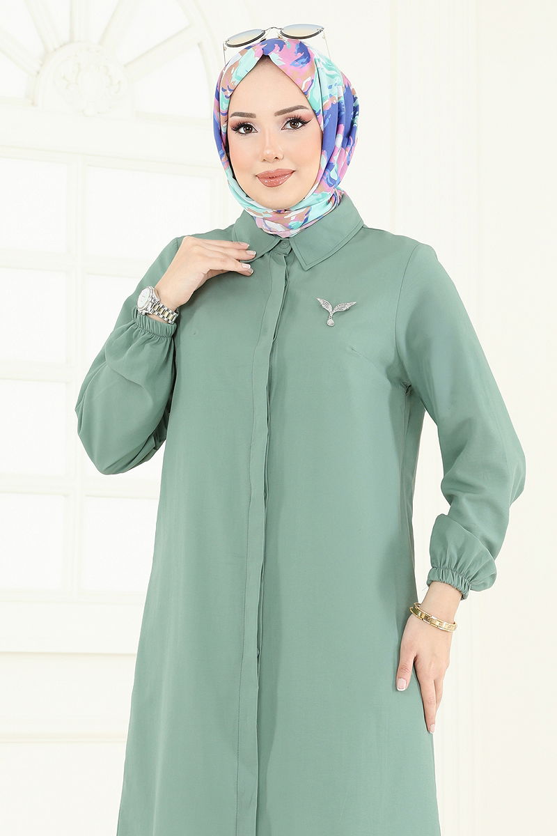 Manşeti Lastikli Tesettür Tunik Açık Mint