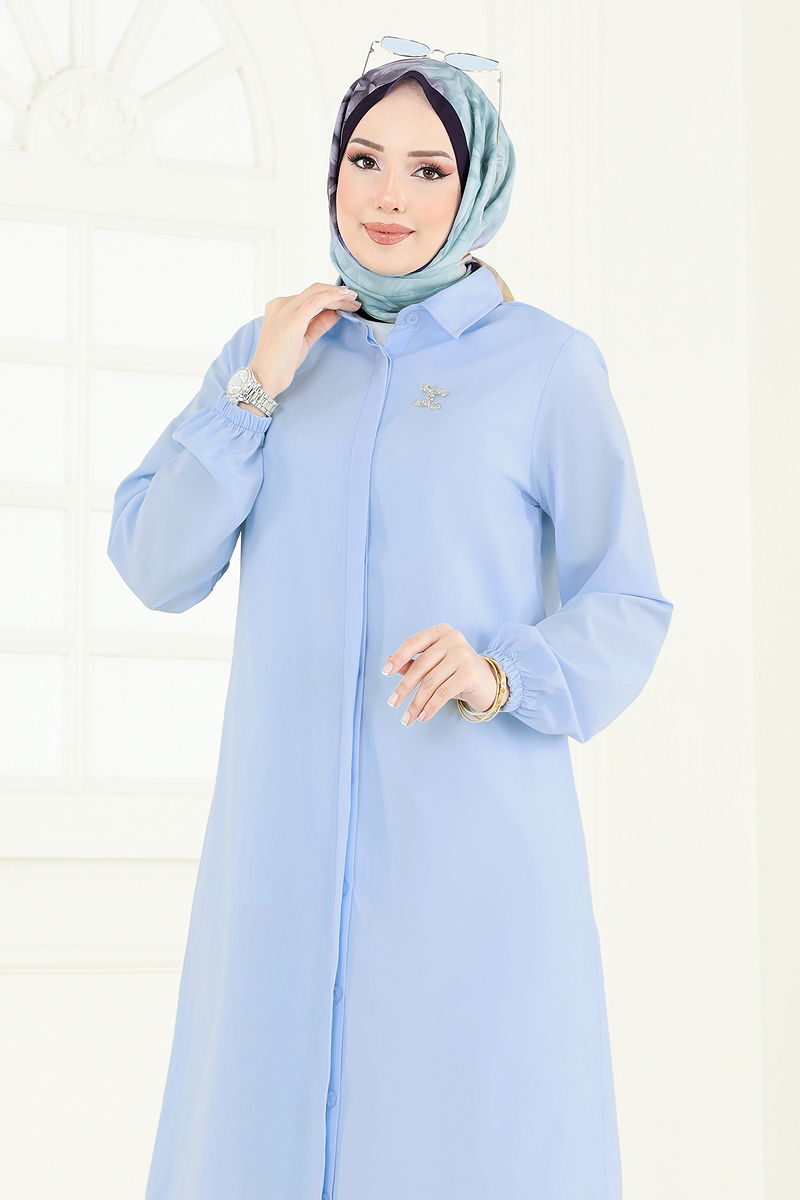 Manşeti Lastikli Tunik, tesettür giyim için ideal bir seçimdir. Dört mevsim rahatlıkla kullanılabilir. Hassas yıkama modunda 30 derecede yıkanabilir özelliği ile pratik ve kullanışlıdır. Poplin kumaştan üretilmiş bu şık tunik, gömlek yaka ve gizli düğme detaylarıyla modern bir tarz sunar. Astarsız yapısı ile hafif ve konforludur. Elastik manşetleri sayesinde kolay bir kullanım sağlar. Modelin üzerindeki ürün 38 bedendir. Stil sahibi ve rahat bir görünüm için idealdir.