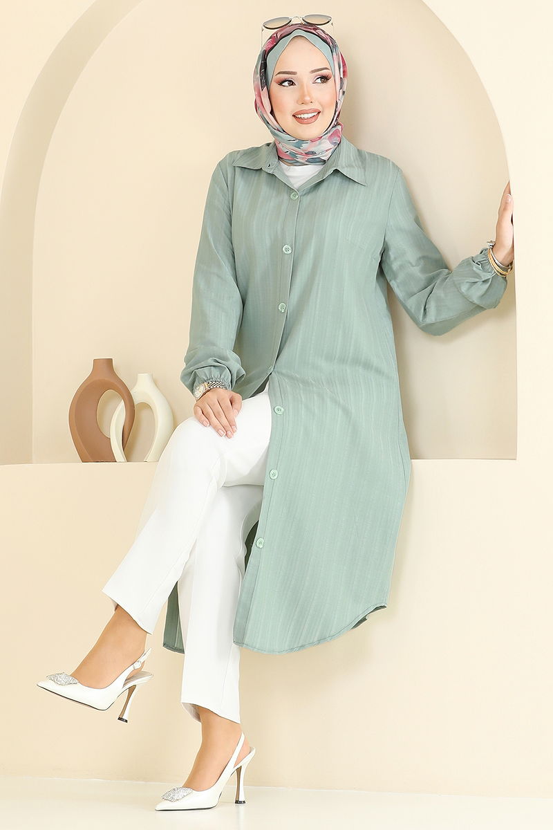 Manşeti Lastikli Tunik Mint