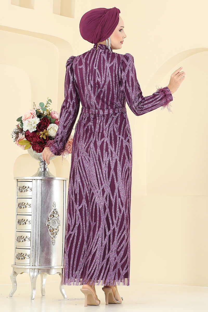 Manşeti Otrişli Simli Abiye Mürdüm