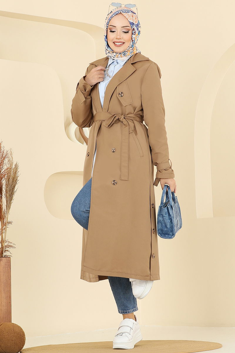 Manşeti Toka Detaylı Trençkot Camel
