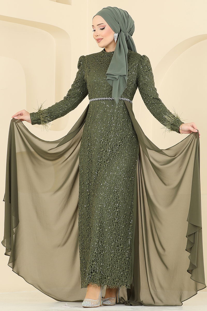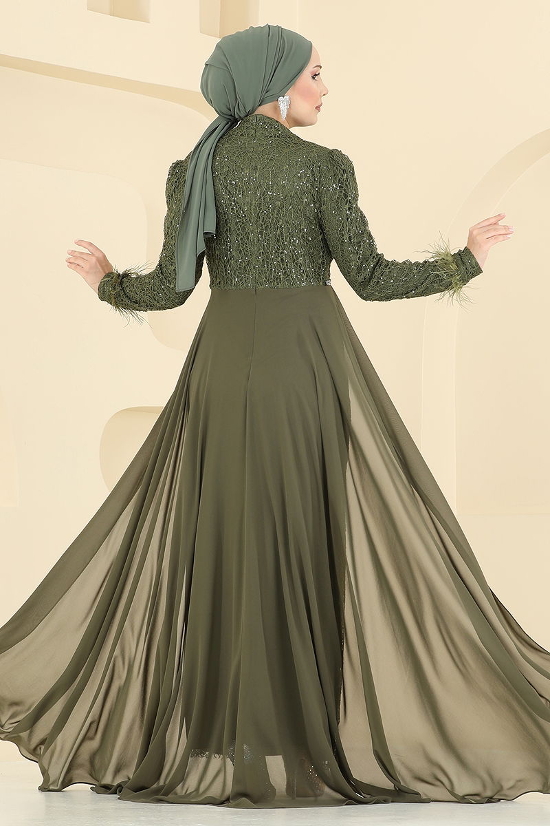 Manşeti Tüy Detaylı Şifon Abiye 2830ELC1143 Haki